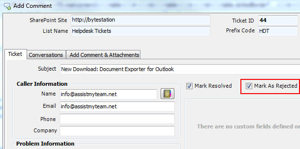 option 'Mark as Rejected'
