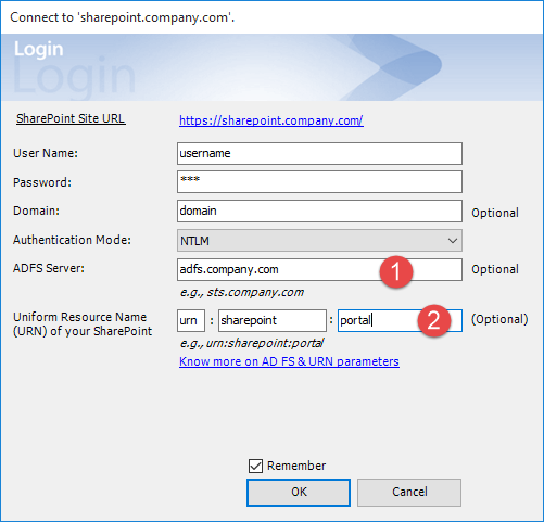 If you don't specify a realm URN or enter an invalid one, you get the following error when trying to connect Issue Tracker addin with SharePoint that uses a federated identity authentication or ADFS: "ID3082: The request scope is not valid or is unsupported." To fix this, we have now added the possibility for the user to enter this realm urn in the login dialog box. ![]() For more on this AD FS and URN realm input, please refer to this KB article #424 |