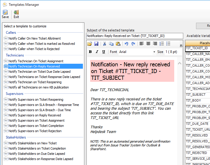 tickets or outgoing responses to callers are