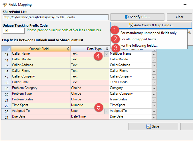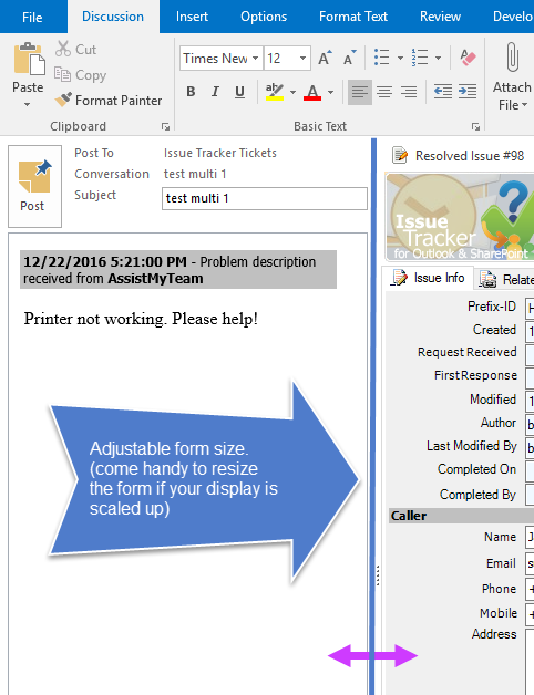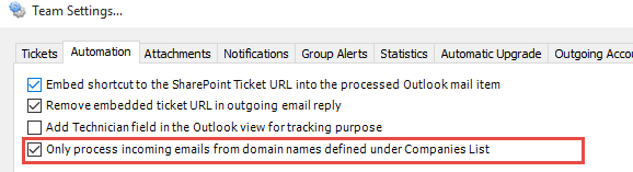 you enable the sub-option 'Automatically save callers detail to this SharePoint Contact list', new contact from the ticket form in Outlook (that does not exist in this SharePoint Contacts List) will be created in this Contacts List. |