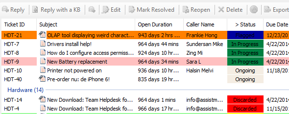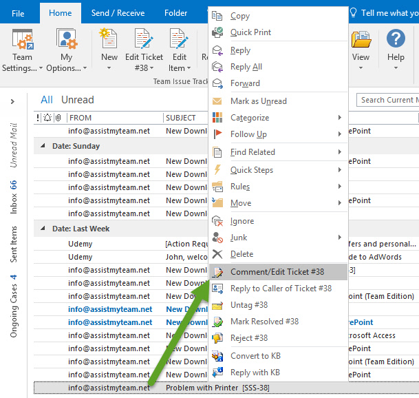 etc.![]() When you select an email that has a ticket ID in the subject (e.g., email responses from the caller), the menu options changes accordingly to make available actions that you can perform on the existing ticket, such as making changes to the ticket, or marking it as resolved or disqualify (reject). ![]() |