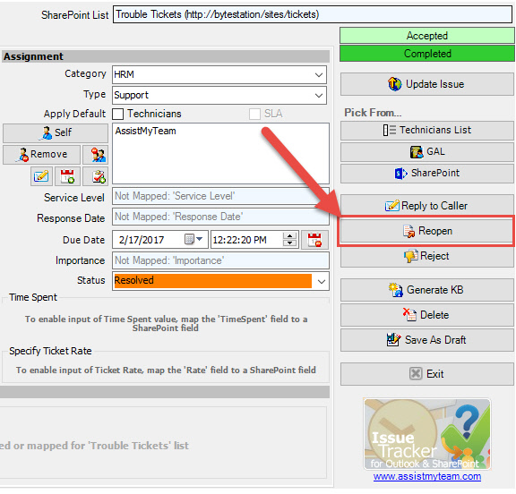 ticket items, the Issue Tracker add-in