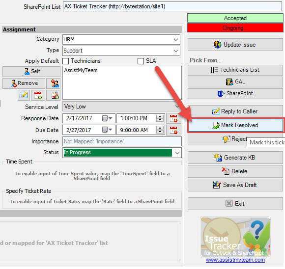 Added 'Mark Resolved' button