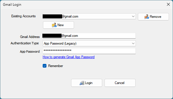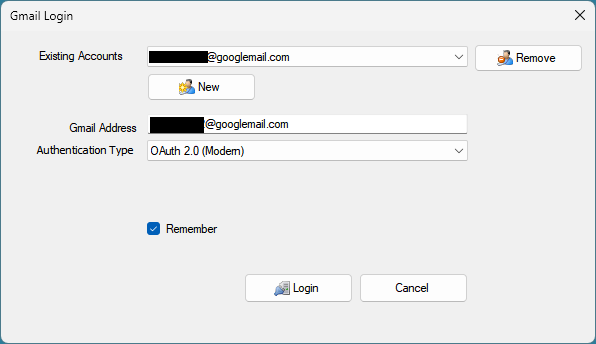 Alternatively, you connect your Google mail account with the Converter App using OAuth (Modern) authentication, all you need to specify is your Google user name and the app will authenticate using your default web browser.