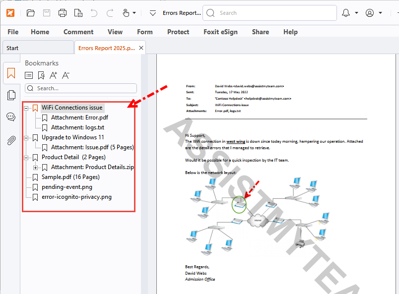 And this is how the generated PDF looks like in PDF Reader software. Notice the emails and file are combined in the same order/sequence as in the basket list of the IMAP to PDF Converter app.