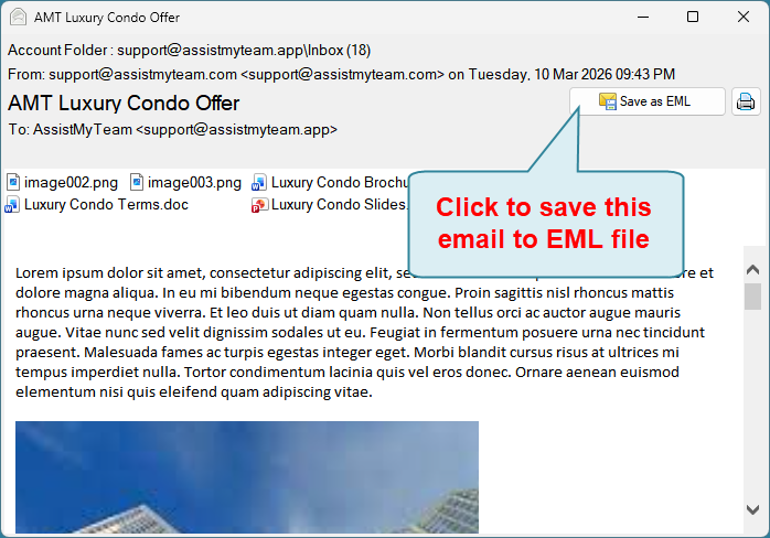 And then choose to save the previewed email to EML by clicking the ‘Save as EML‘ button located on the upper right side.