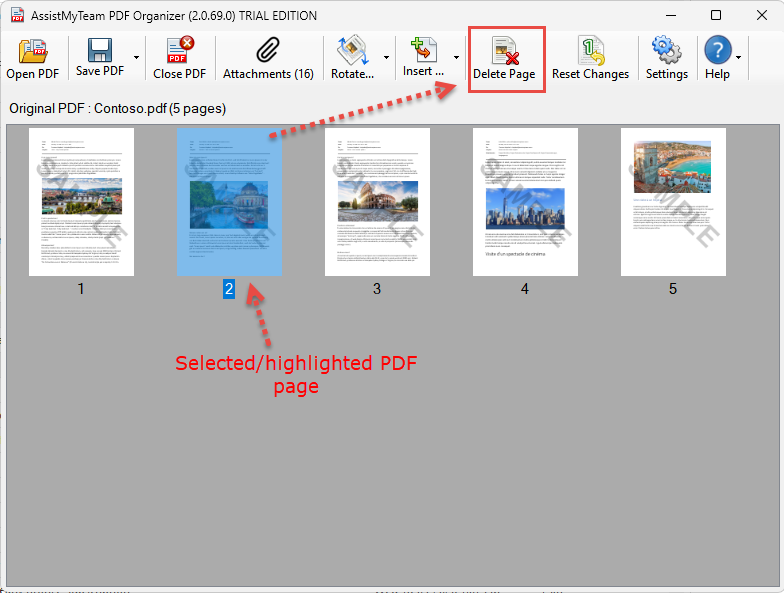 - Delete unwanted pages from your PDF document.