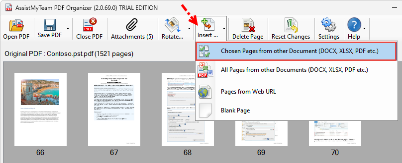 2. Insert pages from multiple documents to PDF