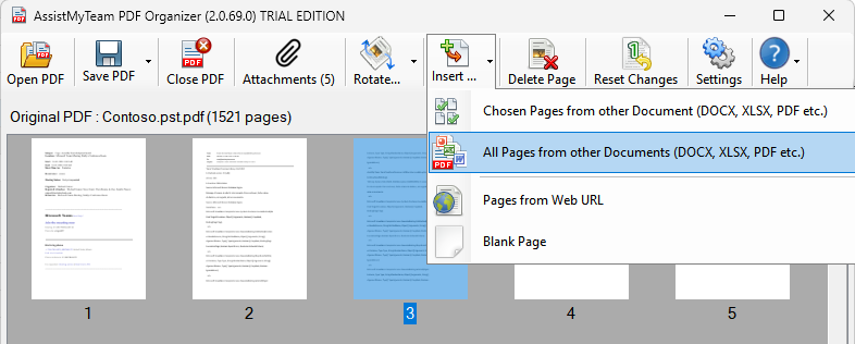 All the pages of the chosen files are then inserted into the page location on the original PDF document that you had specified (e.g., current active page 3).
