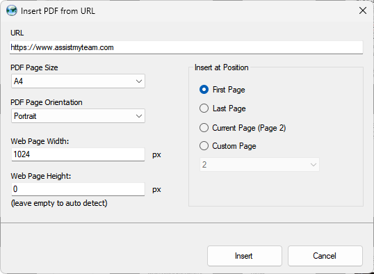 - Insert webpages of your website as pages in your PDF document.