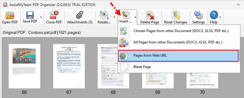 3. Insert pages from website to PDF