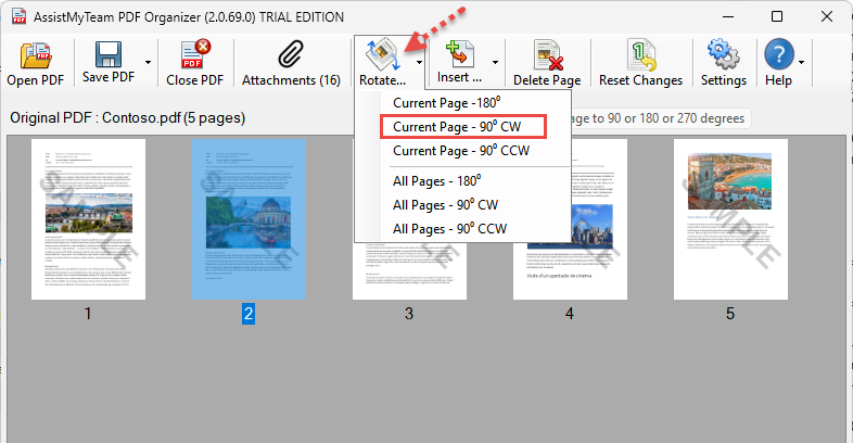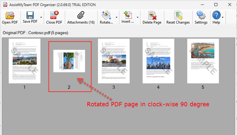 - Rorate PDF pages in 90, 180 degrees – clockwise or counter-clockwise direction.